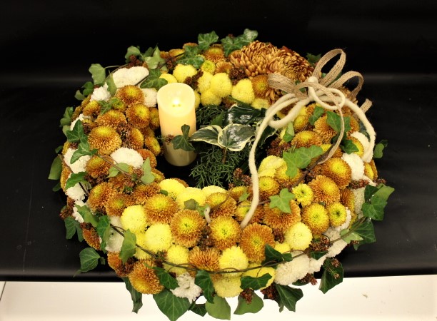 Vjenac promjera 50cm i električna svijeća.