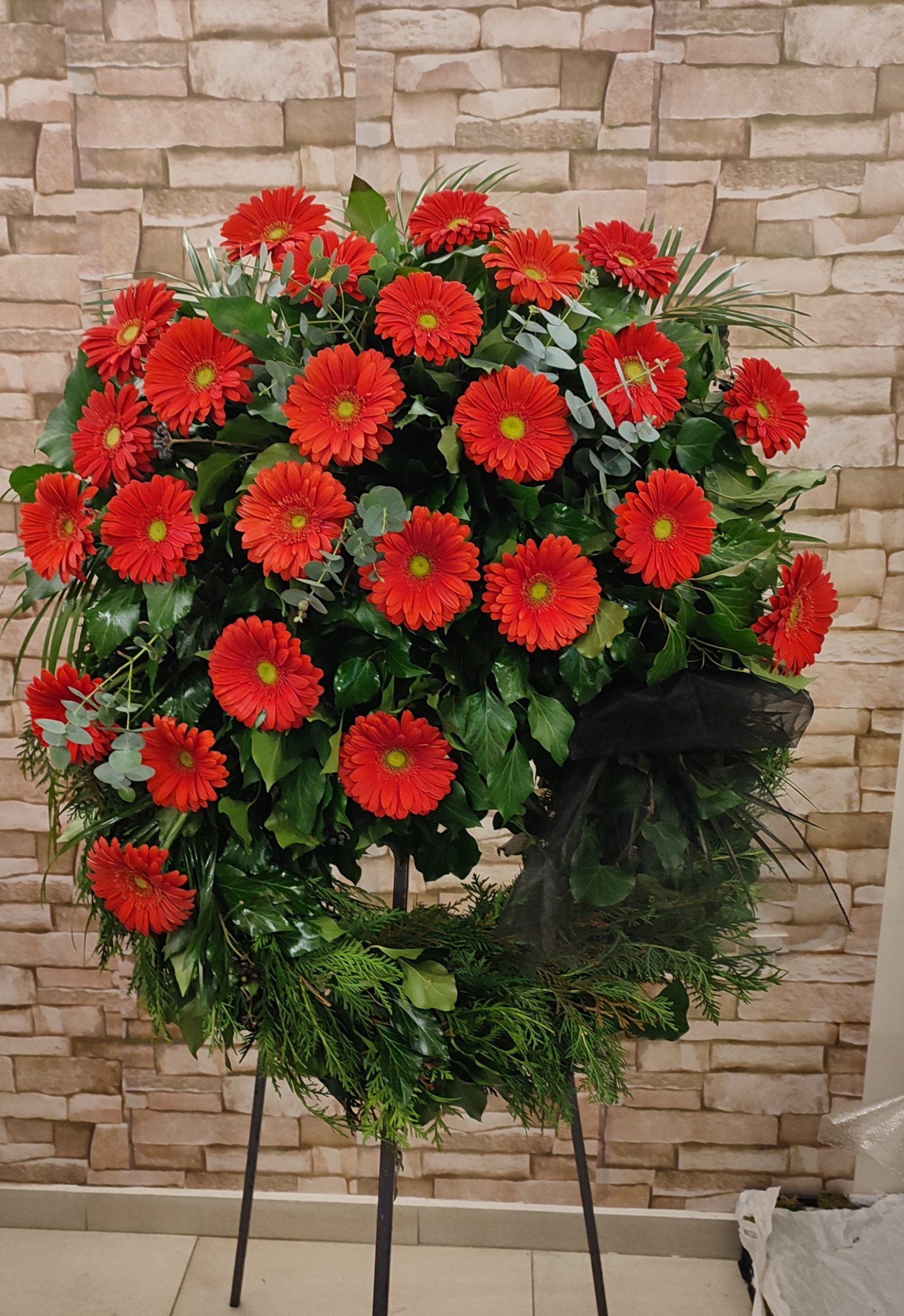 Wreath braided with gerbera ivy, size approx. 120cmx100cm.