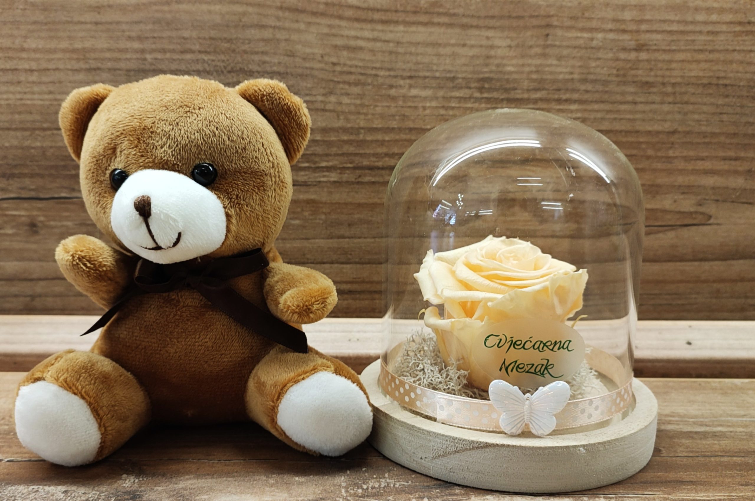 DEHIDRIRANA RUŽA U STAKLENOM ZVONU + MEDO 32Z